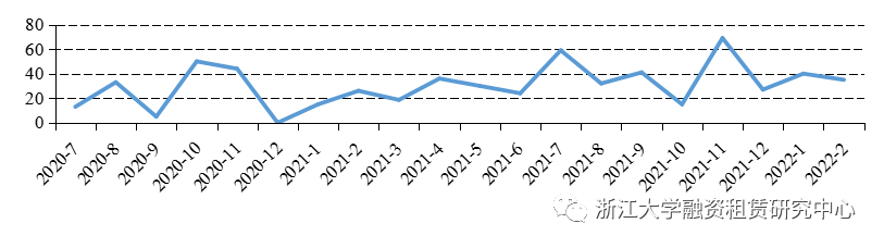 圖1融資租賃公司各月資產支持證券發行數量統計(支)
