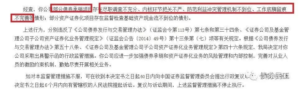 1、2019年10月23日,中山證券部分債券承銷項目存在盡職調查不充分、內核環節把關不嚴、防范利益沖突管理機制不到位、工作底稿留痕不完善等情形,被深圳證監局處以采取出具警示函的行政監管措施。