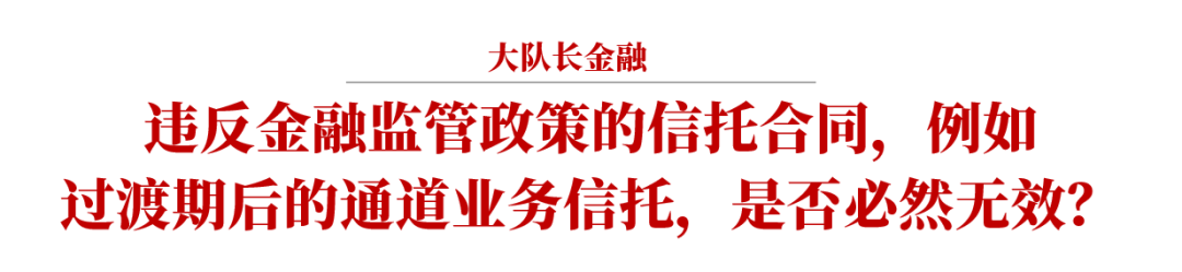 在絕大多數(shù)信托合同效力之爭的案例中,當(dāng)事人主張合同無效的理由主要是違反各類金融監(jiān)管規(guī)定。包括前述場外配資問題、剛兌問題,以及將要討論的信托通道業(yè)務(wù)效力問題,其核心問題都是,違反金融監(jiān)管政策的信托合同是否必然無效,其延伸問題是,違反社會公共利益如何把握。