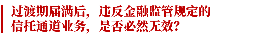 《九民紀(jì)要》第93條對通道業(yè)務(wù)的含義、效力,《資管新規(guī)》過渡期安排等進(jìn)行了明確。目前《資管新規(guī)》過渡期已延長至2021年底。基于《九民紀(jì)要》的規(guī)定,在過渡期內(nèi)的通道業(yè)務(wù),如果不存在其他無效事由的,將被認(rèn)定為有效。那么,根據(jù)該條規(guī)定,是否可以得出過渡期之后的通道業(yè)務(wù),將必然被認(rèn)定為無效的結(jié)論。