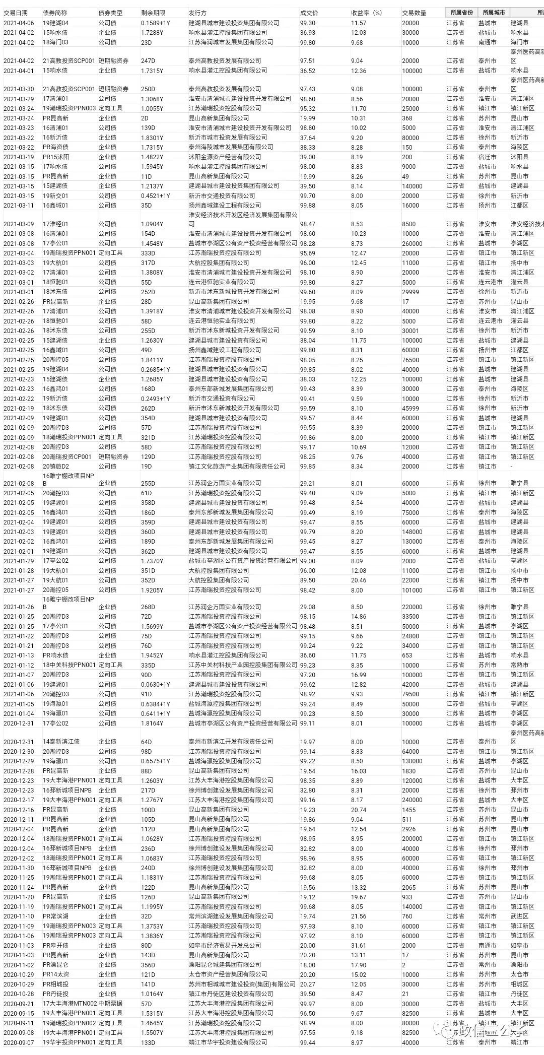 整理了一下過去半年內,到期日在2年以內的二級市場收益高于8%的江浙魯城投的成交信息,分享給大家。