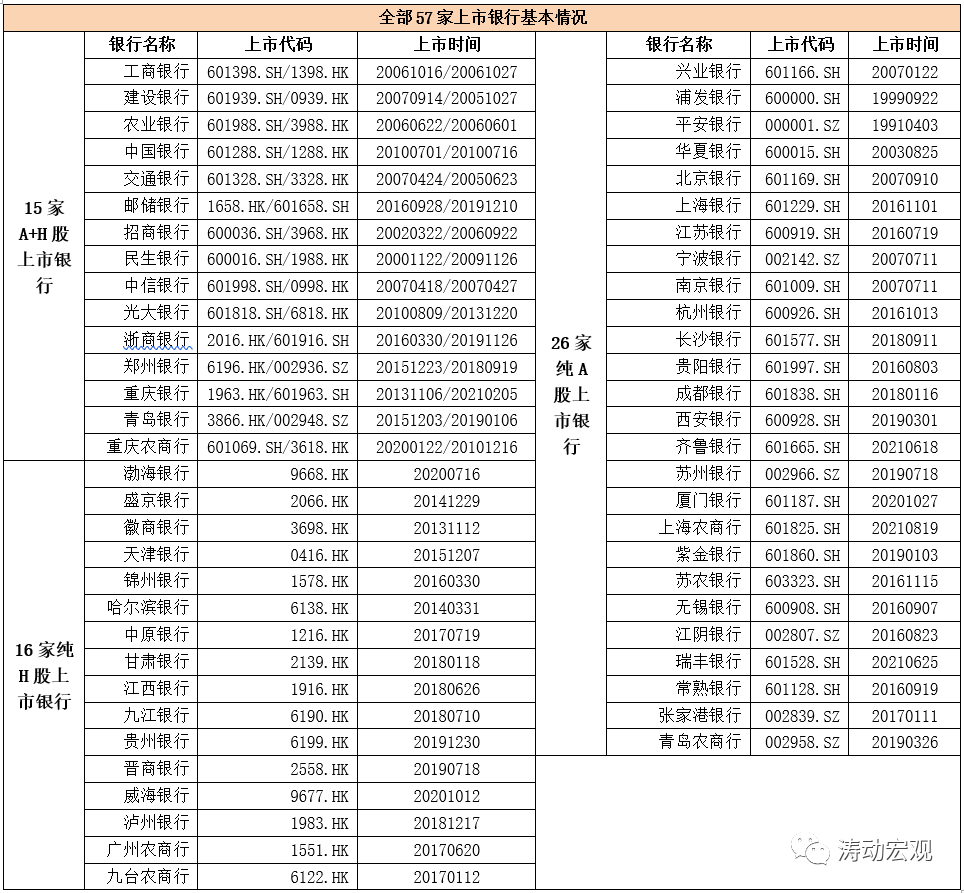 截至目前,除剛剛上市的上海農商行外(2021年8月19日上市),其余56家上市銀行均已公布2021年半年報。目前57家上市銀行具體包括6家國有大行、10家股份行(僅余廣發銀行與恒豐銀行未上市)、29家城商行以及12家農商行。此外,57家上市銀行可進一步分為15家A+H股上市銀行、26家純A股上市銀行、16家純H股上市銀行。整體來看,今年上半年上市銀行之間分化愈發明顯,部分銀行通過減少撥備計提來提高凈利潤同比增速。