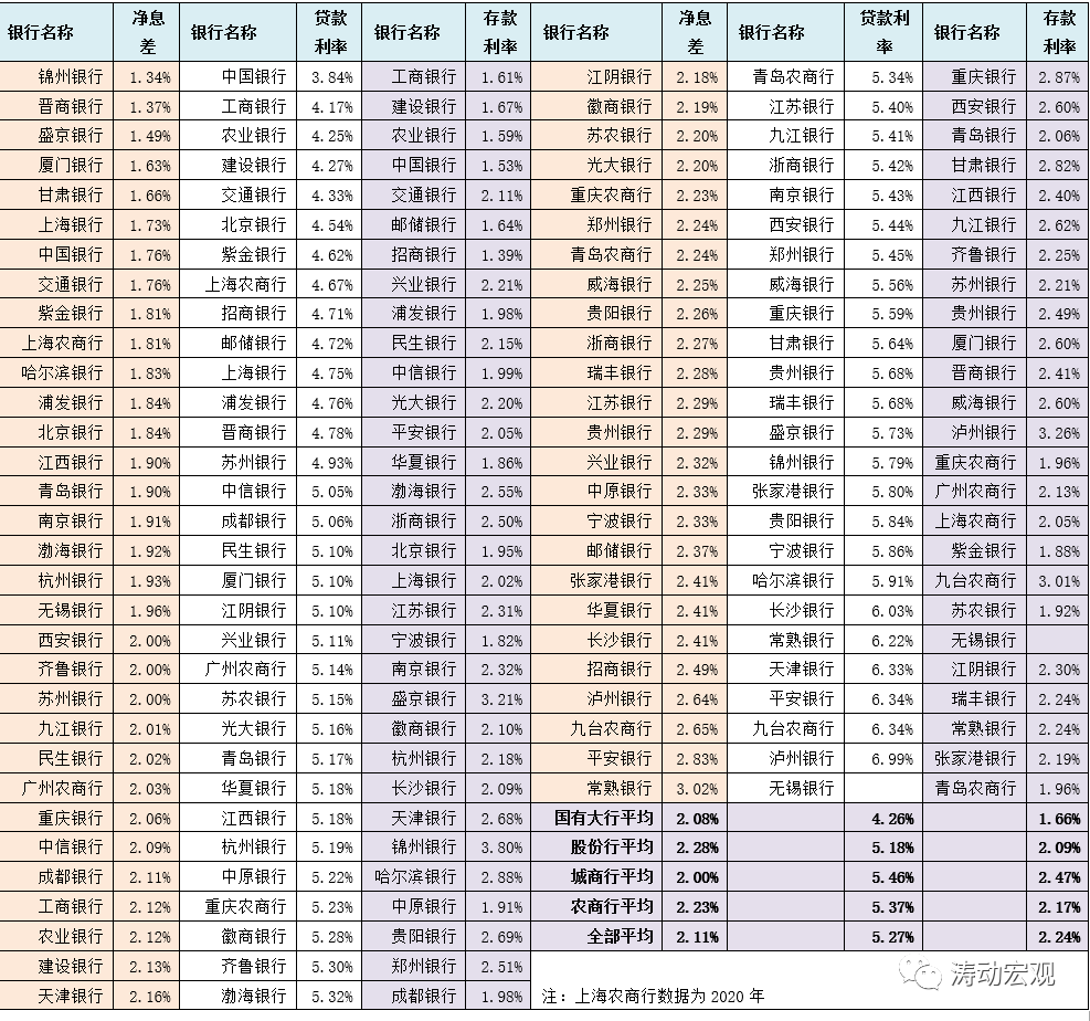 今年上半年,國有大行、股份行、城商行以及農商行的凈息差分別為2.08%、2.28%、2%和2.23%,全部上市銀行的凈息差平均為2.11%。