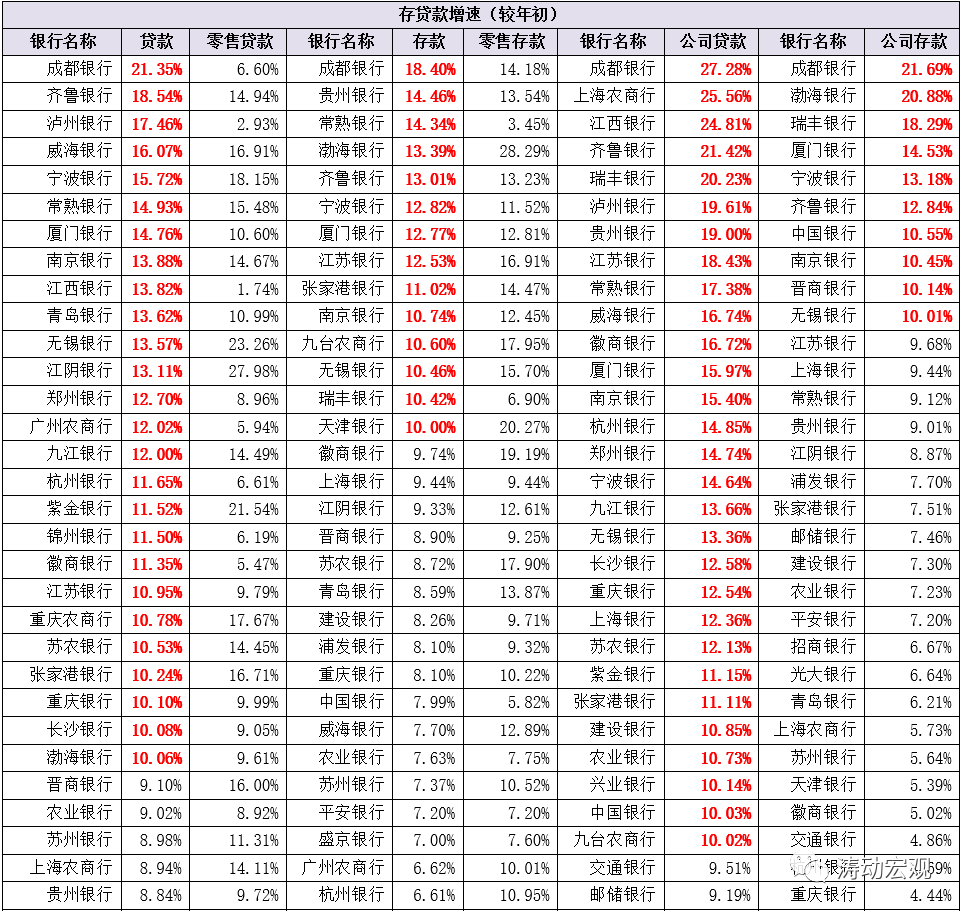 (一)今年上半年,國有大行、股份行、城商行與農商行的貸款增速分別為8.31%、6.17%、10.94%與10.75%,零售貸款增速分別為6.81%、6.48%、9.09%與14.74%,公司貸款增速分別為9.82%、5.28%、12.43%與11.70%。