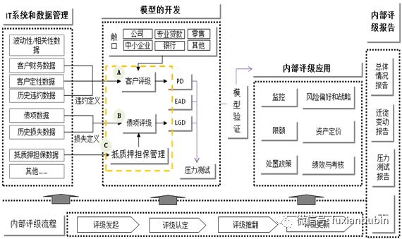 信用風(fēng)險計(jì)量是現(xiàn)代信用風(fēng)險管理的基礎(chǔ)和關(guān)鍵環(huán)節(jié),信用風(fēng)險計(jì)量經(jīng)歷了專家判斷法(即長期在一線業(yè)務(wù)骨干在承擔(dān)信用風(fēng)險過程中逐步發(fā)展并完善起來的傳統(tǒng)信用分析方法,主要考察與債務(wù)人相關(guān)的聲譽(yù)、杠桿和收益波動性等指標(biāo),及與市場相關(guān)的經(jīng)濟(jì)周期、宏觀經(jīng)濟(jì)政策、利率水平等指標(biāo))、信用評分模型到違約概率模型三個主要發(fā)展階段。現(xiàn)在對于信用風(fēng)險的計(jì)量主要依賴于對借款人和交易風(fēng)險的評估,主要是從客戶評級維度和債項(xiàng)評級維度兩個方向展開。