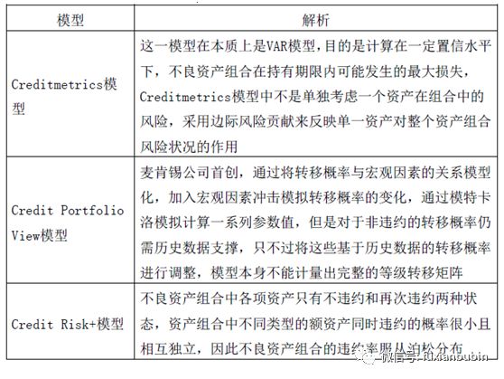對于金融業(yè)務(wù)的開展而言,還要考慮信用風(fēng)險組合模型,根據(jù)實(shí)踐,目前采用的模型主要包括以下表所示: