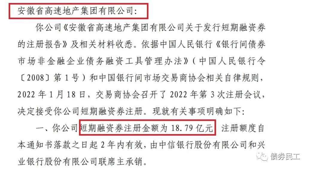 3、安徽省高速地產集團有限公司取得18.79億元短期融資券批文。安徽高速地產短期融資券批文的公布日期是2022年3月4日,注冊會議的時間為2022年1月18日(第3次注冊會議),落款日為1月20日。