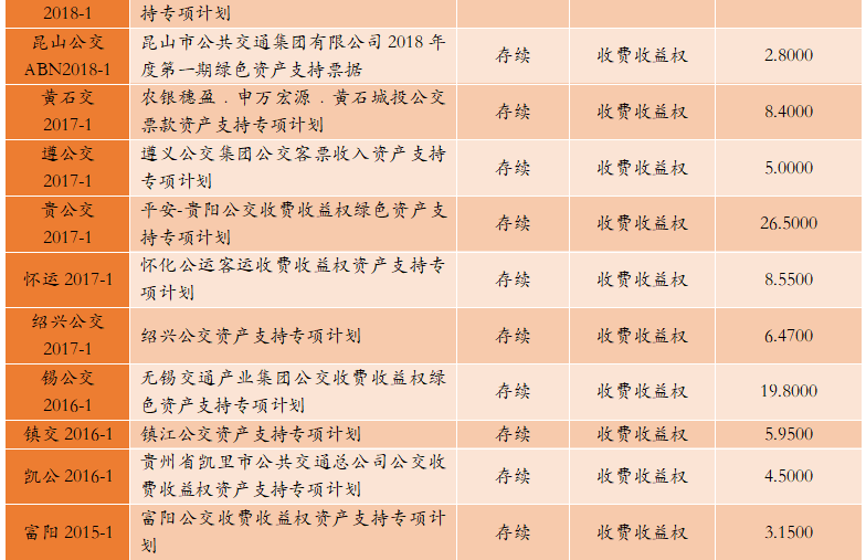 1. 公交收費(fèi)收益權(quán)ABS市場(chǎng)情況