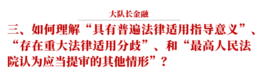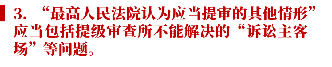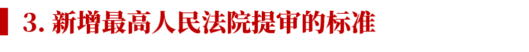 再審審查之后,最高人民法院決定提審的要求更高,需要滿足:(1) 具有普遍法律適用指導(dǎo)意義的;(2) 最高人民法院或者不同高級人民法院之間近三年裁判生效的同類案件存在重大法律適用分歧,截至案件審理時仍未解決的;(3) 最高人民法院認(rèn)為應(yīng)當(dāng)提審的其他情形。