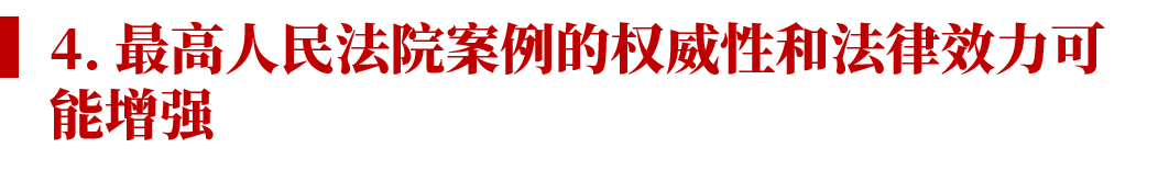 最高人民法院審理的案件將會有“一少一多”兩方面的變化。最高人民法院受理的案件總數(shù)無疑將更少,但最高人民法院裁判的權(quán)威性和法律效力將可能大大增強。未來甚至可能建立最高人民法院裁判直接轉(zhuǎn)化為指導(dǎo)性案例的工作機制。
