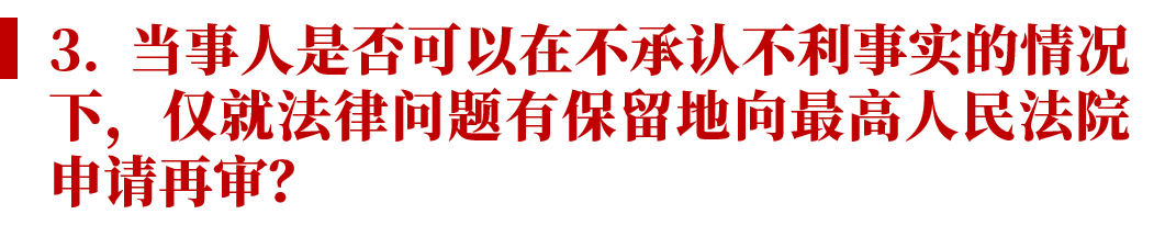 如果案件明顯符合這一標(biāo)準(zhǔn),即案件爭議完全屬于對法律適用的不同理解,則也無需過多討論。本文希望討論的是,如果案件存在涉及主要事實問題的爭議,是否還有可能向最高人民法院提起再審?