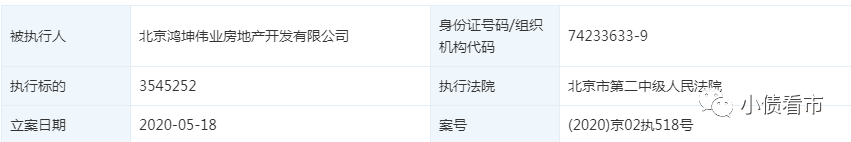 歷史上,鴻坤地產已多次被列為被執行人。今年5月,由于355萬元執行標的,其又被北京市第二中級人民法院列為被執行人。