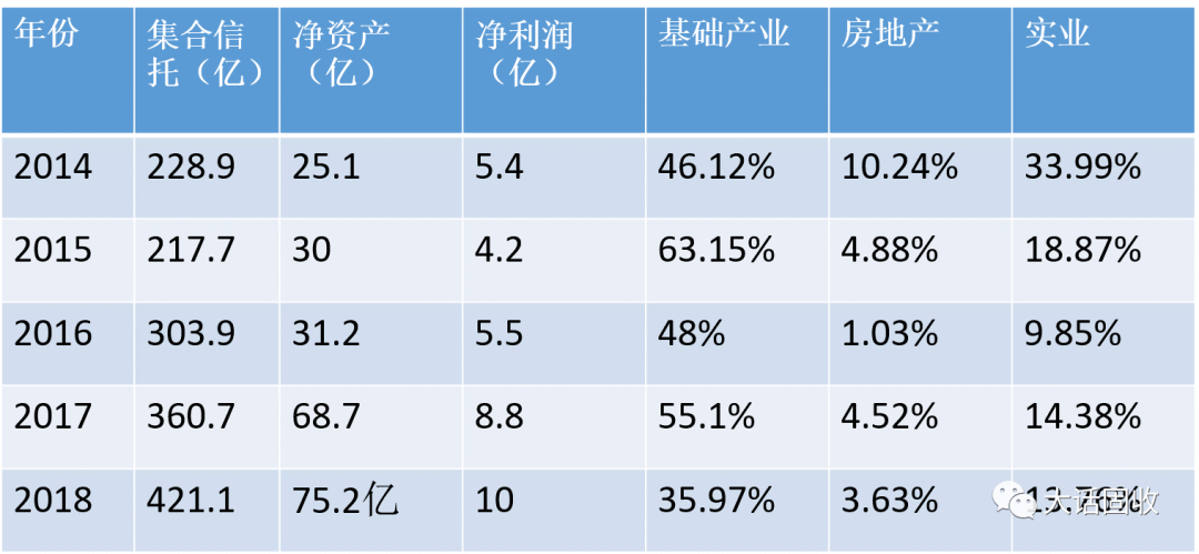 從經(jīng)營(yíng)上來(lái)看,2017年之后有比較突出的變化。相比于前三年,凈資產(chǎn)與凈利潤(rùn)雙雙翻倍,集合信托管理規(guī)模也接近翻倍。2017年發(fā)生了什么呢?