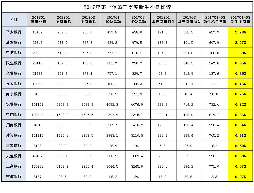 各銀行都已經(jīng)出完了2018年三季報,我們也對一些銀行進行了解讀,應該說行業(yè)數(shù)據(jù)整體看還是不錯的,還有進一步好轉(zhuǎn)的跡象。但是在非標轉(zhuǎn)標、表外轉(zhuǎn)表內(nèi)、貸款占比普遍提高,以及監(jiān)管部門進一步嚴格要求不良口徑的情況下,從數(shù)據(jù)上看資產(chǎn)質(zhì)量拐點又出現(xiàn)一些反復。由于不少銀行根據(jù)新的會計準則在年初一次性計提了一筆撥備,對新生不良的同比計算會造成干擾。我們截取一季度至三季度的數(shù)據(jù)同比分析新生不良,也即銀行在這個期間的信用成本。下面對我們重點關(guān)注的15家上市時間長投資價值不錯的銀行進行分析,歡迎大家一起討論。
