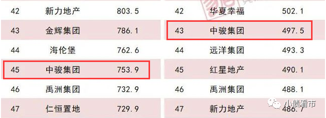 據克而瑞排名顯示,中駿集團以753.9億操盤金額排名第45位;以497.5萬平方米操盤面積位居第43位。