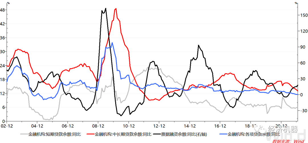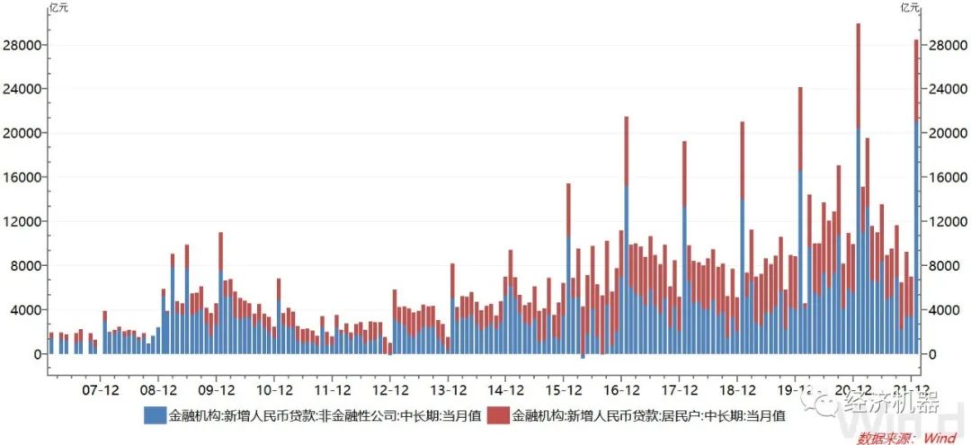 2)居民戶中長期新增貸款同比顯著少增,是拖累中長期新增貸款增加的主要原因。1月中長期貸款中,非金融公司中長期貸款新增2.1萬億元,同比基本持平。這與1月PMI數據相對一致,即生產活動維持相對平穩,不溫不火。