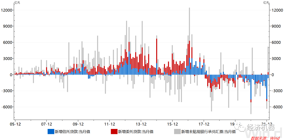 5)影子銀行的壓降有所放緩。1月影子銀行融資增加4479億元,同比多增328億元。其中信托貸款減少680億元,同比多增162億元,持續第2個月同比多增(圖5)。這似乎表明房地產信托政策也有所松動,表外融資開始有所活躍。雖然整體規模偏小,但顯示信托機構和房地產商的風險偏好有逐步所修復的跡象。