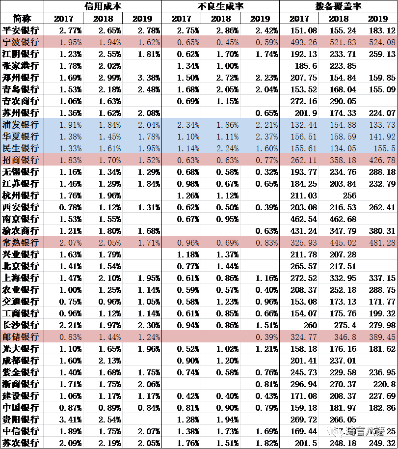 信用成本是衡量銀行當(dāng)期計提撥備的情況,反映銀行一年內(nèi)的短期風(fēng)險暴露策略。信用成本=在利潤表中當(dāng)期計提的撥備/貸款平均余額,當(dāng)期計提的撥備反映在利潤表中的“資產(chǎn)減值損失”。