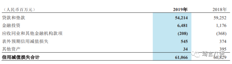 以招行為例,下圖是其2019年年報的信用減值損失明細(xì)披露,可以發(fā)現(xiàn)貸款和墊款信用減值損失是信用減值損失的最大組成部分,占比達(dá)88.78%,但同比下降8.63個百分點(diǎn),主要是金融投資的信用減值損失同比增加451%。這體現(xiàn)出招行為應(yīng)對監(jiān)管新規(guī)而主動加大非信貸類資產(chǎn)的計提力度和審慎經(jīng)營的經(jīng)營理念。