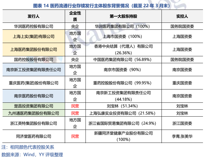 股東背景:醫藥流通行業發債主體以國企為主。