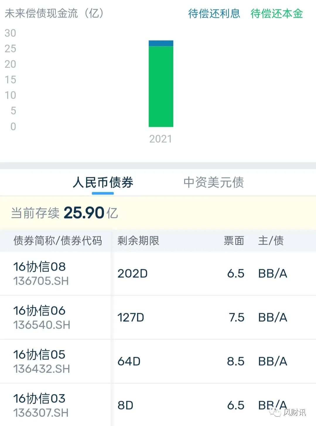 據BondInsight消息,這兩只債截至公告出具日,公司未能與部分投資者達成展期協議,公司可用于兌付債券資金規模不足以覆蓋債券待償還本金及利息。