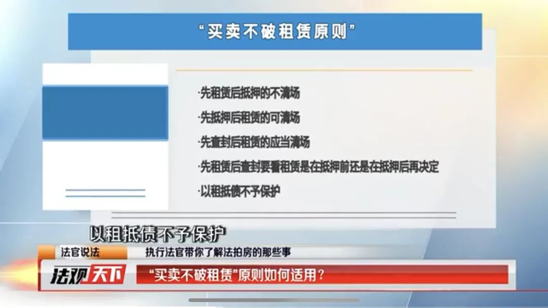 法官表示:關于這個問題,涉及到一個法律原則的適用的問題,這個原則叫買賣不破租賃,買賣不破租賃是一般原則,但這個原則的適用有例外情況,可以概括為先租賃后抵押的不清場,先抵押后租賃的可清場,先查封后租賃的應當清場,先租賃后查封的要看租賃是在抵押前還是在抵押后再決定,以租抵債不予保護。