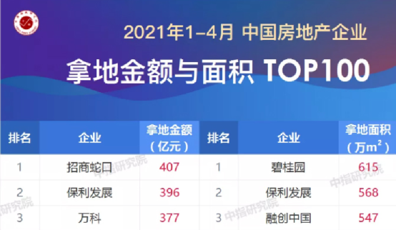 利好之下,結(jié)果就是1-4月招商蛇口拿地金額達(dá)407億元,位列房企拿地金額榜單第一。