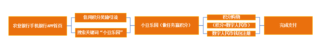 在行業(yè)整體技術(shù)基礎(chǔ)上,農(nóng)業(yè)銀行基于區(qū)塊鏈技術(shù)的透明度、不可篡改性和參與者可訪問性等技術(shù)特征,推出數(shù)字積分項(xiàng)目 “小豆”, “小豆”類似Token,以小豆樂園的各類權(quán)益激勵客戶更多地體驗(yàn)農(nóng)行掌銀重點(diǎn)功能和服務(wù)。目前,“小豆”積分的價值也是通過權(quán)益兌換實(shí)現(xiàn),其主要作用是將農(nóng)行掌銀客戶轉(zhuǎn)化為數(shù)字人民幣錢包用戶,以及通過高頻營銷活動帶動農(nóng)行掌銀月活。