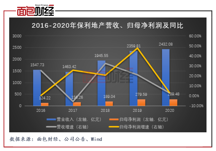 圖1:2016-2020年保利地產(chǎn)營收、歸母凈利潤及同比
