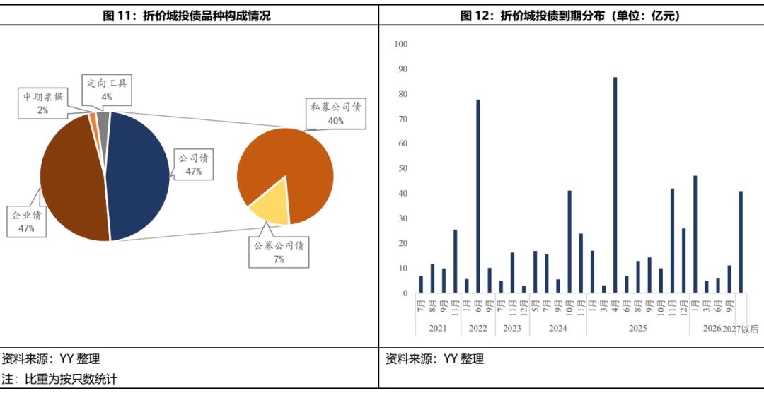 上表可見(jiàn),貴州折價(jià)城投券大多集中在YY評(píng)級(jí)7、8、9的弱資質(zhì)市級(jí)和區(qū)縣級(jí)平臺(tái),僅有貴陽(yáng)市城市軌道交通集團(tuán)有限公司一家YY評(píng)級(jí)為6,主要是因?yàn)?5貴陽(yáng)軌道可續(xù)期債的條款設(shè)置非常不友好,發(fā)行人在每5個(gè)計(jì)息年度末可選擇延期,但從第21個(gè)計(jì)息年度起才會(huì)進(jìn)行票面利率跳升,是顯著的條款坑,wind計(jì)算是按5+N計(jì)算,而實(shí)質(zhì)剩余是14+N,從首次可以懲罰性跳升算期限,后續(xù)的永續(xù)債的條款需要仔細(xì)解讀。