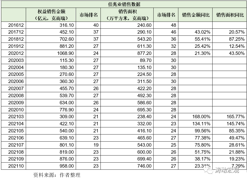 例如,2020年全年,佳兆業(yè)集團(tuán)的權(quán)益銷售金額和銷售面積分別為1068.90億元和877.20萬平方米,分別位列市場第24位和第28位。再比如,今年1-10月,佳兆業(yè)集團(tuán)的權(quán)益銷售金額和銷售面積分別為958億元和746萬平方米,位居全國地產(chǎn)企業(yè)第23位和第27位,同比分別增長23.31%和7.29%。