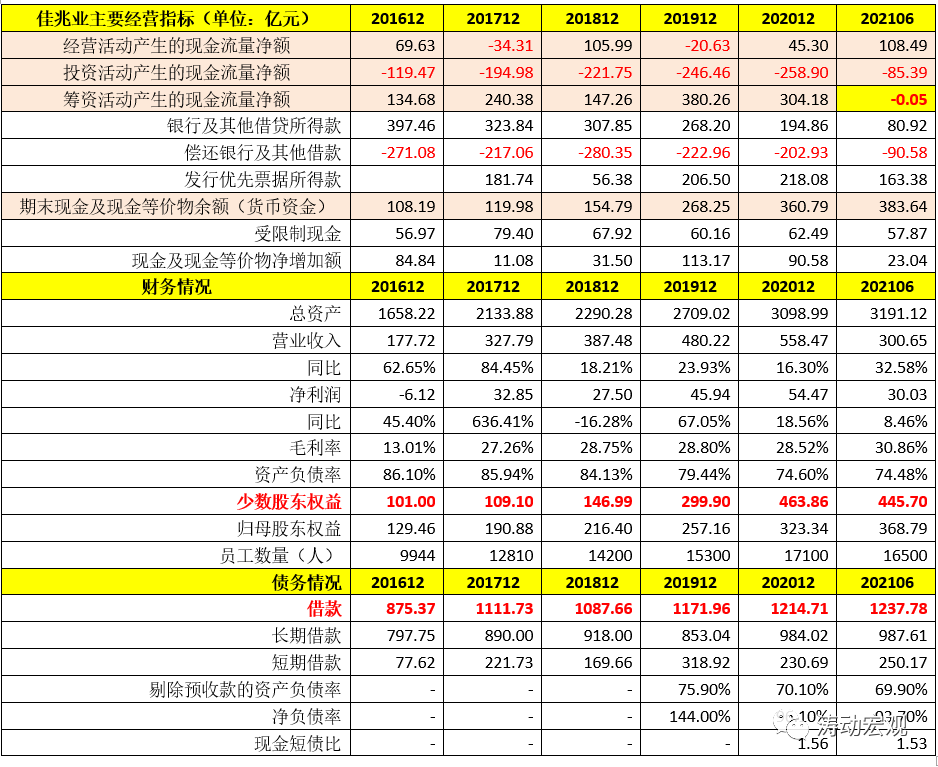 從財(cái)務(wù)指標(biāo)上看,佳兆業(yè)集團(tuán)的經(jīng)營情況還是比較正常,經(jīng)營活動(dòng)與投資活動(dòng)均可理解,但籌資活動(dòng)方面的變化值得關(guān)注。