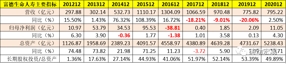 3、不過目前富德生命人壽自身也是困難重重。2017-2020年三年期間,營收同比分別下降18.21%、9.01%和20.06%。并且,在富德生命人壽的資產(chǎn)構(gòu)成中,長期股權(quán)投資占比達(dá)到50%左右,可以其實(shí)質(zhì)上更像是一家控股集團(tuán)。