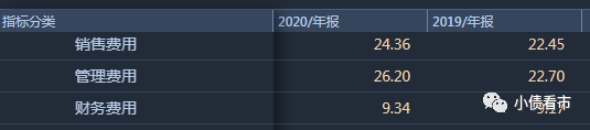 有息負債高企,榮盛發展融資成本上升,2019和2020年其財務費用支出均超9億元,另外銷售費用和管理費用也逐年增長,期間費用對公司利潤形成嚴重侵蝕。
