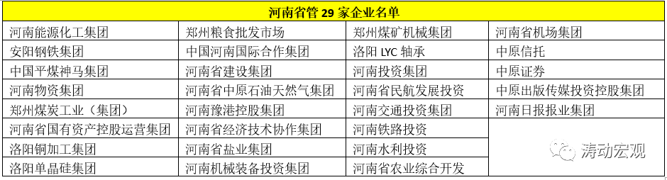 (三)2016年河南省啟動了重點省屬國有工業(yè)企業(yè)改革,2017年則將國企改革由工業(yè)企業(yè)轉(zhuǎn)向全部企業(yè)。目前河南省共有29家省管(屬)國企名單。