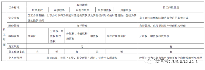 市場(chǎng)上存在將員工持股計(jì)劃與股權(quán)激勵(lì)混同的現(xiàn)象,但在監(jiān)管和法律層面,二者屬于完全不同的體系,其中“員工持股計(jì)劃”與“股東(雇主)持股”是對(duì)應(yīng)概念,強(qiáng)調(diào)持股主體的變化,更強(qiáng)調(diào)建立和完善勞動(dòng)者和所有者的利益共享機(jī)制;“股權(quán)激勵(lì)”與“工資福利”是對(duì)應(yīng)的概念,屬于人力資源薪酬體系,強(qiáng)調(diào)股權(quán)的收益分紅特性,旨在建立長(zhǎng)期激勵(lì)機(jī)制,吸引和留住核心人才。二者區(qū)別如下: