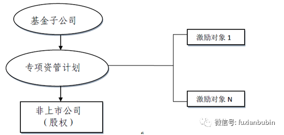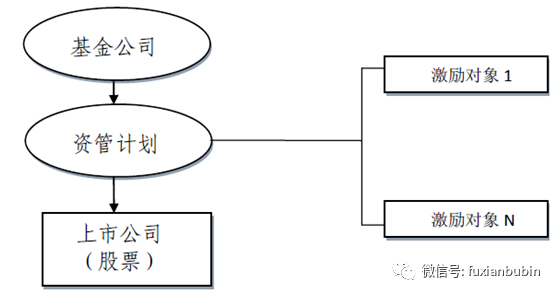 該模式主要通過(guò)基金公司或資產(chǎn)管理公司設(shè)立資產(chǎn)管理計(jì)劃投資擬實(shí)施員工持股計(jì)劃的上市公司的股票,其中以“康源藥業(yè)員工持股方案”為典型;或者通過(guò)基金公司下設(shè)的子公司設(shè)立專項(xiàng)資產(chǎn)管理計(jì)劃投資擬實(shí)施員工持股計(jì)劃的非上市公司的股份,其中以“民生電商員工持股方案”為典型。具體模式如圖所示: