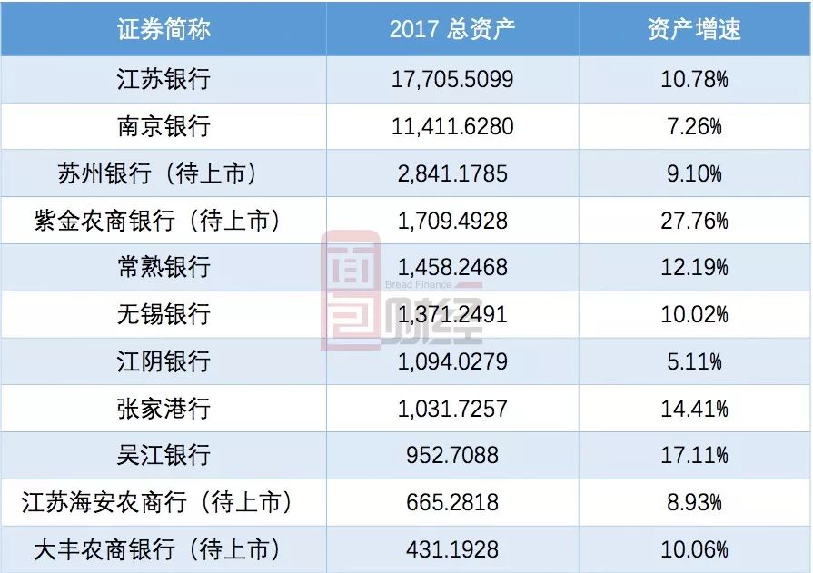 在已上市的銀行中,資產規模最小的為吳江銀行,截至2017年底總資產達952.71億元。如果剩余三家江蘇省內銀行能成功過會上市,大豐農商行或將創A股最迷你上市銀行記錄。