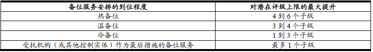 表一 合格“備位服務”下潛在評級上限的最大提升