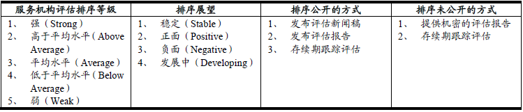 表二 標普的“服務機構”評估排序